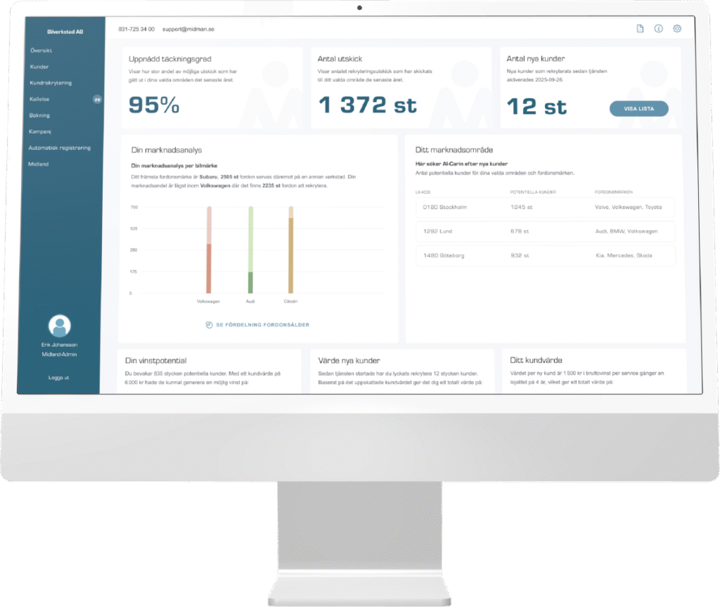 - Följ hur många kunder Midman når och hur väl dina målgrupper täcks.